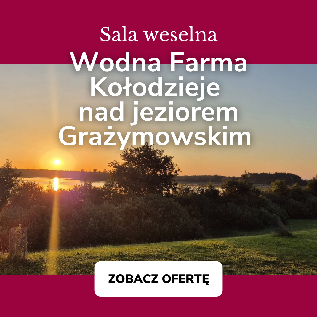 Wodna Farma Kołodzieje nad jeziorem Grażymowskim to miejsce, w którym natura gra pierwsze skrzypce, a Wasza historia miłości dostaje najpiękniejszą możliwą oprawę. Jeśli marzycie o ślubie z widokiem na wodę, o zachodzie słońca odbijającym się w tafli jeziora i przyjęciu, które płynie w rytmie spokoju i radości… właśnie znaleźliście swoją przystań.